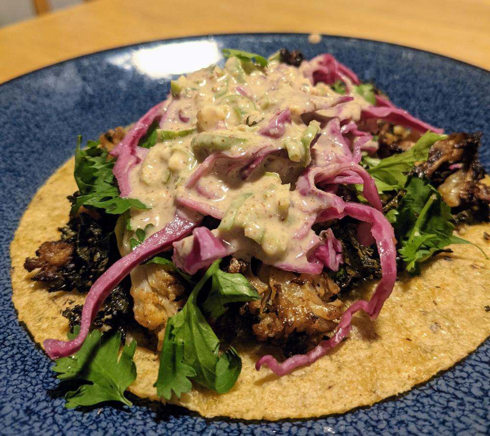 Roasted Cauliflower, Brussel Sprouts, and Black Bean Tacos
